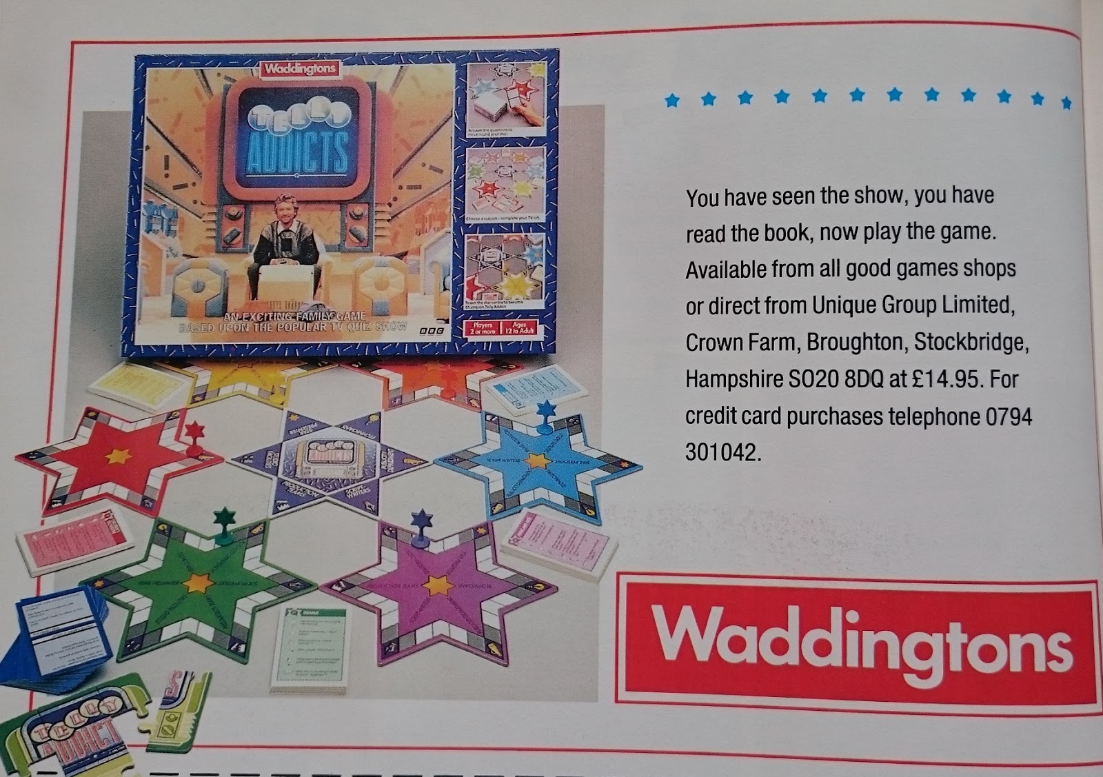 And that's it. But don't worry, there's a last minute chance to send even more money to Unique Group with the grand purchasement of this fine spin-off board game and its much beloved Family spin-off which got a lot of play. Except of course when we were watching Telly Addicts...
